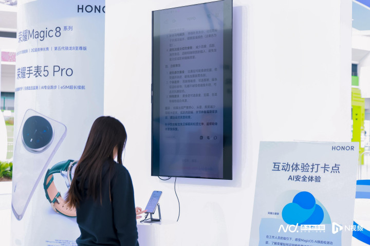 在展区的另一侧,现场工作人员用荣耀Magic8系列手机与MagicV5折叠屏手机,演示了通过YOYO智能体进行语音交互,手机不仅能调取深马的赛道路线等基本信息,还能根据用户的历史配速,规划出合理的体能分配策略。